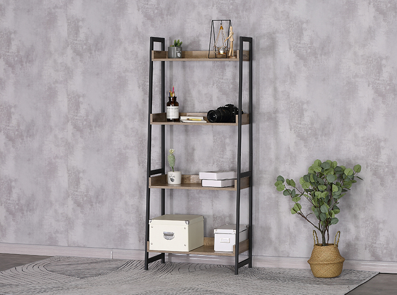 ◎Ladder Bookshelf with Wood Edges 4 Tiers